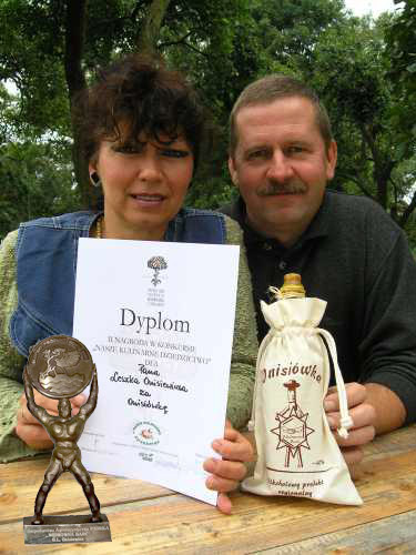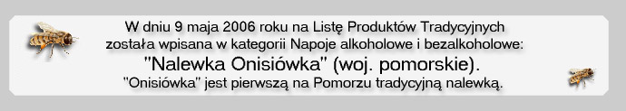 Otrzymała nagrody: - Słupski Produkt Roku 2005; - II miejsce Szymbark 2005 - w konkursie kulinarnym organizowanym przez Polską Izbę Produktu Regionalnego i Lokalnego; - I miejsce w „I Kulinarnych Mistrzostwach Pomorskich Gospodarstw Agroturystycznych - 2006" - MTT Gdańsk 2006; - I miejsce „Słupski Koszyk Regionalny – 2007”; - Hit Bukowiska 2008 - MTT Supraśl. Nalewki spirytusowe na bazie miodu, a taką właśnie nalewką jest „Onisiówka”, znane są od dawna. W czasach Rzeczypospolitej Obojga Narodów nalewki, nie tylko z miodu, sporządzano w każdym zaścianku, dworze, magnackiej rezydencji, a niektóre pilnie strzeżone receptury swoimi korzeniami sięgały średniowiecza. Wytwarzano nalewki od wytrawnych po półsłodkie. Od słabych (zawierających 30% alkoholu) do bardzo mocnych, mających nawet do 75% czystego alkoholu. Taką właśnie bardzo znaną nalewką na bazie miodu jest krupnik, w skład którego wchodzą: spirytus, miód, cynamon, goździki, imbir, gałka muszkatołowa i wanilia (moc od 40 do 75%). Recepturę wyrobu krupniku opisał Jan Cieślak w książce Domowy wyrób win (1985 rok). Ponieważ nalewki miodowe były wytwarzane na użytek domowy, ze względu na ich właściwości lecznicze i rozgrzewające, trudno natrafić na pisemne receptury ich wyrobu. Pomorskie pszczelarstwo ma bardzo bogate tradycje. Pierwsze udokumentowane wzmianki na jego temat sięgają 1766 roku (zabór pruski), kiedy to powstało Stowarzyszenie Gospodarczo-Pszczelarskie zrzeszające między innymi pomorskich bartników. Do dzisiaj pszczelarstwo na Pomorzu rozwija się dobrze, a miody pozyskiwane w czystym środowisku tego regionu zyskują uznanie konsumentów z całego kraju i zza zagranicy. Pasieka „Wędrowna Barć” stacjonuje we wsi Krzemienica pod Słupskiem, w gospodarstwie chłopskim z I połowy XIX wieku i właśnie stąd pochodziły najważniejsze składniki „Onisiówki” – miody. W gospodarstwie prowadzona jest agroturystyka edukacyjna promująca pszczelarstwo i zdrowotne właściwości produktów pszczelich. Od 1996 roku pozyskiwane są różne gatunki miodów z okolicznych pożytków pszczelich: rzepakowy, wielokwiatowy (z malin leśnych, roślin łąkowych i leśnych), gryczany, lipowy oraz wrzosowy. Wcześniej miody do wyrobu „Onisiówki” były kupowane od pszczelarzy z regionu słupskiego. Okoliczne lasy i obejścia wiejskie dostarczają drugiego ważnego surowca – kwiatów czarnego bzu, z których sporządza się syrop tzw. hyczkę. Kwiaty czarnego bzu, a szczególnie ich właściwości lecznicze (działanie przeciwgorączkowe i napotne zapobiega przeziębieniom, grypie oraz zimowym infekcjom), były wykorzystywane w gospodarstwach domowych od bardzo dawna. Jak wynika z zapisów ulubioną kąpielą władczyni Egiptu, Kleopatry, było pławienie się w odwarze z kwiatów czarnego bzu. Połączenie tych produktów (miodów i syropu z kwiatów czarnego bzu) ze spirytusem daje nalewkę „Onisiówkę” o działaniu zarówno charakterystycznym dla alkoholu, jak i leczniczym. W smaku wyczuwa się miód, którego delikatna słodycz przechodzi w goryczkę pochodzącą z hyczki. Sporządzanie nalewki „Onisiówki” według słownych przekazów rodzinnych ma blisko 40-letnią tradycję. Receptura i umiejętność jej sporządzania przeszła z ojca na syna. Alkohol ten był wystawiany podczas szczególnych uroczystości rodzinnych i spotkań koleżeńskich. Zawsze cieszył się uznaniem ze względu na wybitne walory konsumpcyjne i żadna większa uroczystość nie mogła się odbyć choćby bez kieliszka „Onisiówki”.
